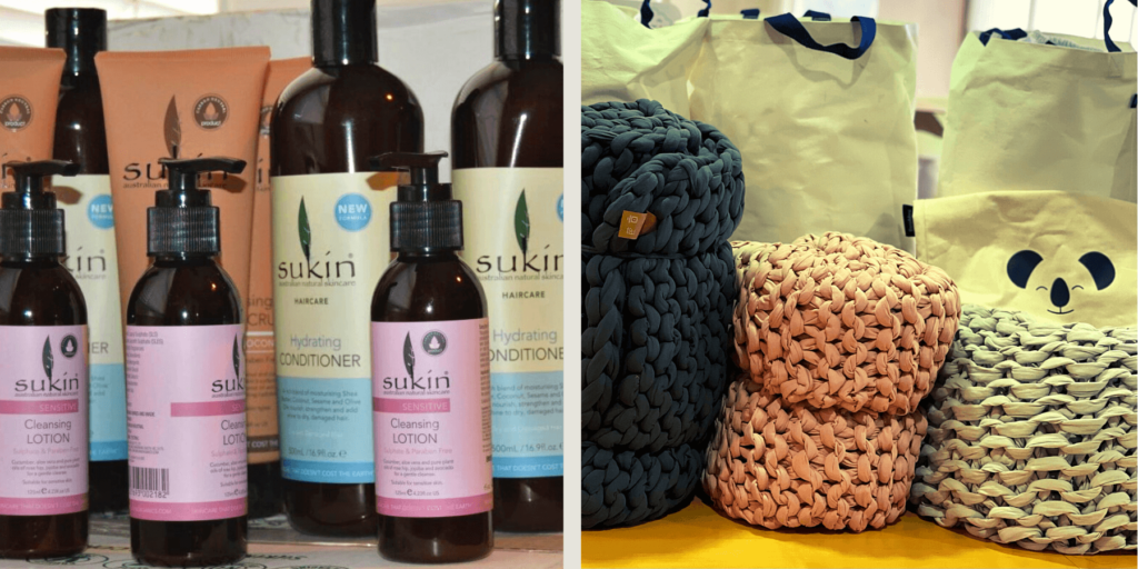 Donated personal care products and weighted blankets from Shelter Partnership and Baby2Baby.