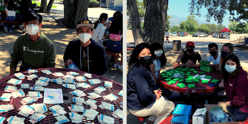 La Cañada High School students assembling hygiene kits.